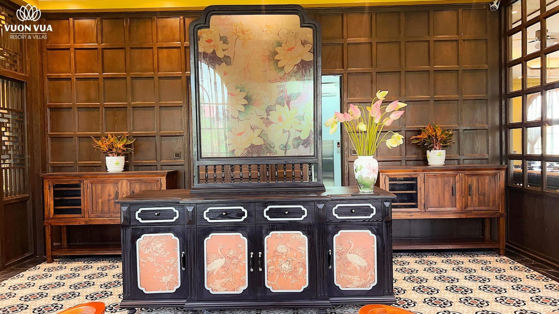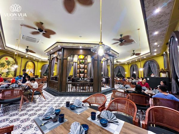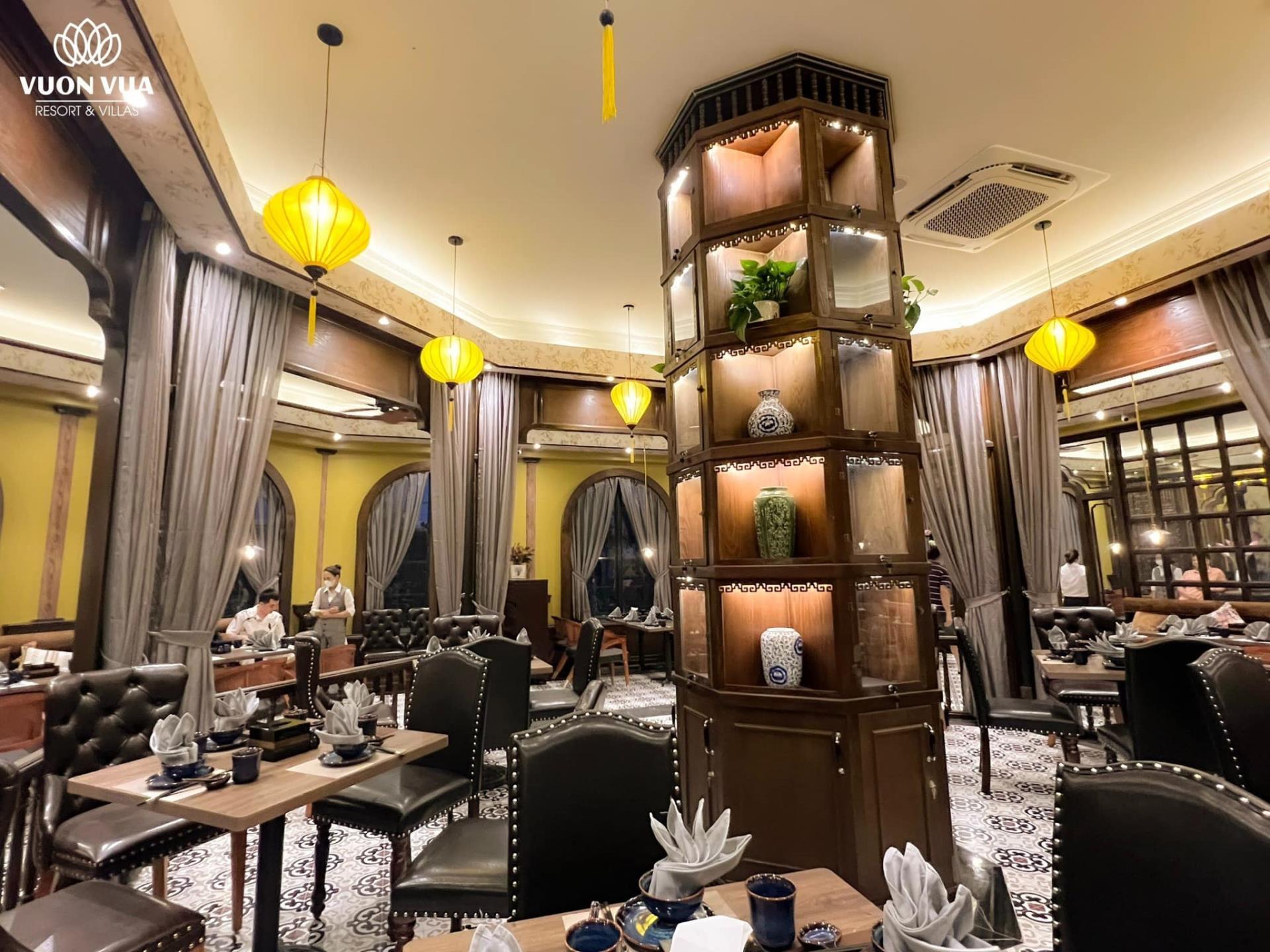 Nhà hàng nằm trọn không gian tầng 2 khu bể bơi bốn mùa trong nhà. Xung quanh được thiết kế các ô cửa kính vòm nhìn ra bên ngoài mang đến một không gian mở hài hòa với thiên nhiên. Tại đây, quý khách có ngắm trọn đầm sen Bạch Thủy thơ mộng; Hồ bơi ngoài trời xanh mát; Công viên khoáng nóng The Little Onsen Town; Tổ hợp King garden beer Club & karaoke sôi động…