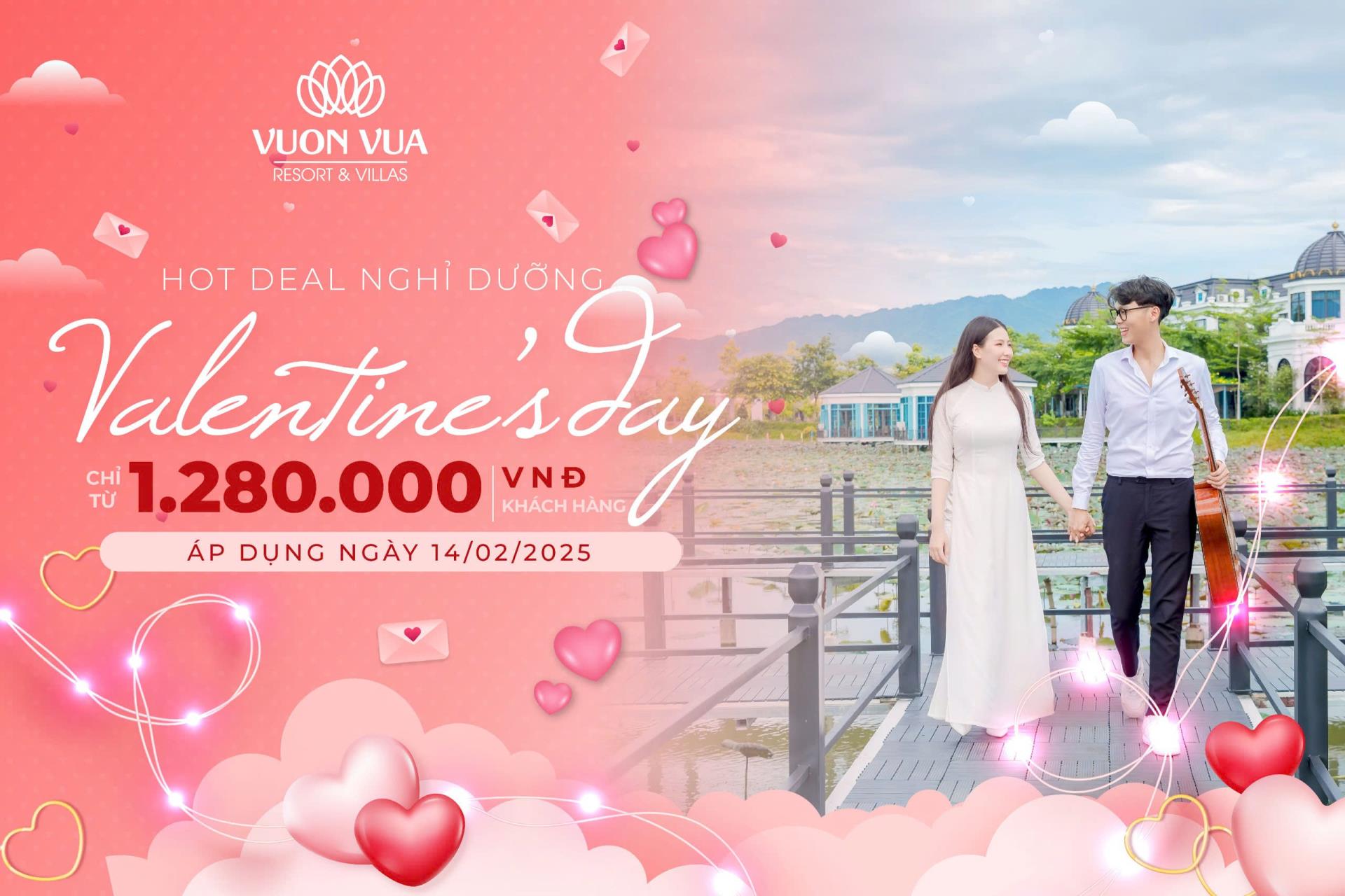 Dành tặng người thương ‘’món quà nghỉ dưỡng’’ trong ngày lễ Valentine thật lãng mạn và đáng nhớ tại Vườn Vua Resort & Villas với chương trình ưu đãi cực hấp dẫn dành riêng cho khách lưu trú.