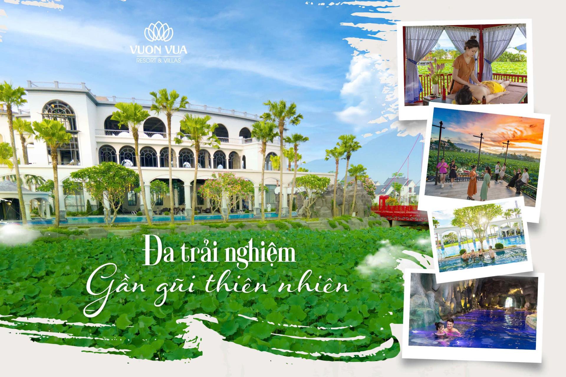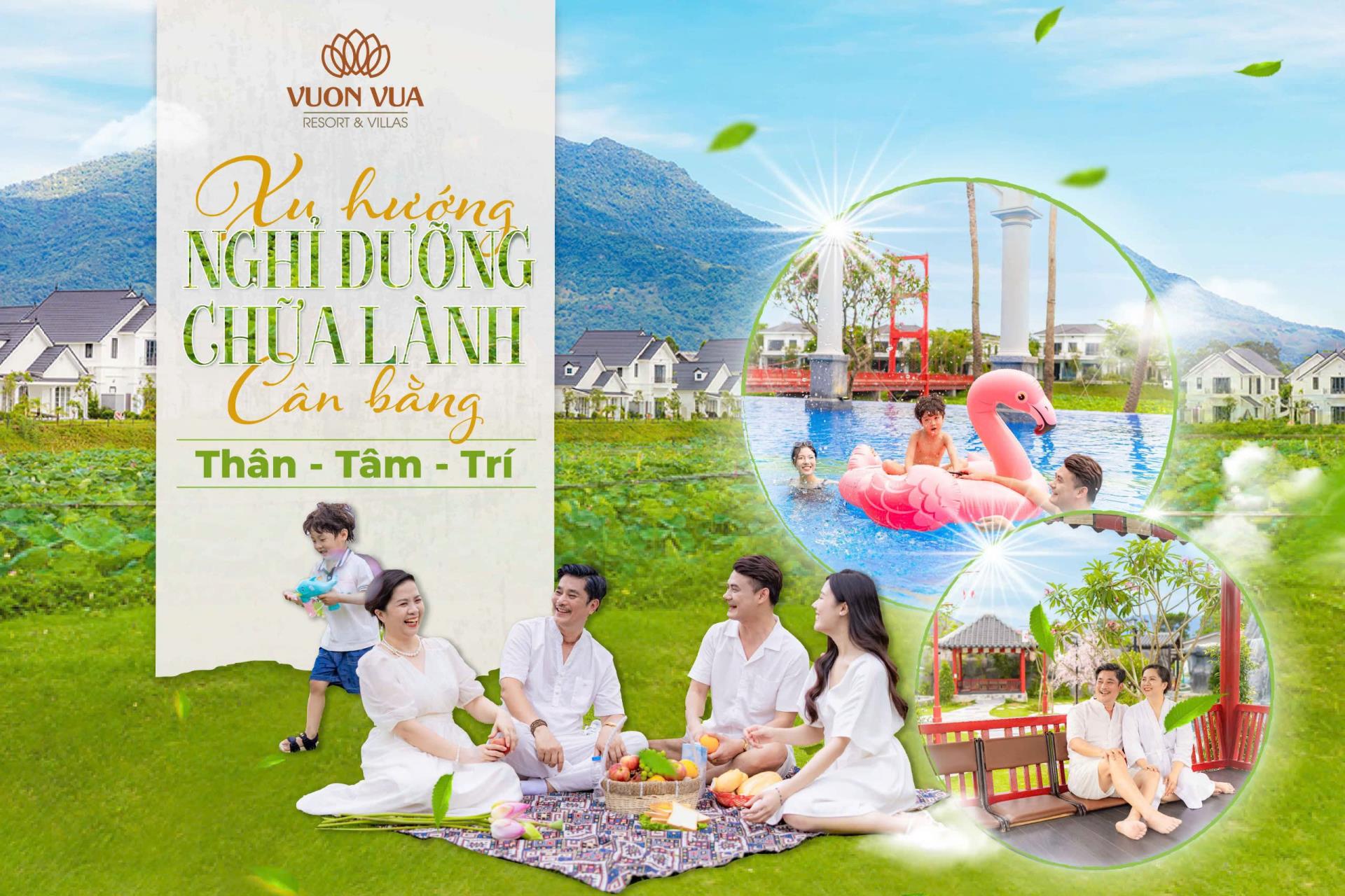 Gác lại những công việc bộn bề cùng chờ đón và tận hưởng kỳ nghỉ lễ Quốc Khánh bên gia đình. Sự kết hợp hoàn hảo giữa không gian nghỉ dưỡng xanh thư thái cùng những trải nghiệm chăm sóc sức khỏe độc bản “Wellness” tại Vườn Vua Resort & Villas chắc chắn sẽ mang đến cho bạn những trải nghiệm cân bằng Thân - Tâm - Trí hiệu quả, ngập tràn năng lượng sau kỳ nghỉ chữa lành.
