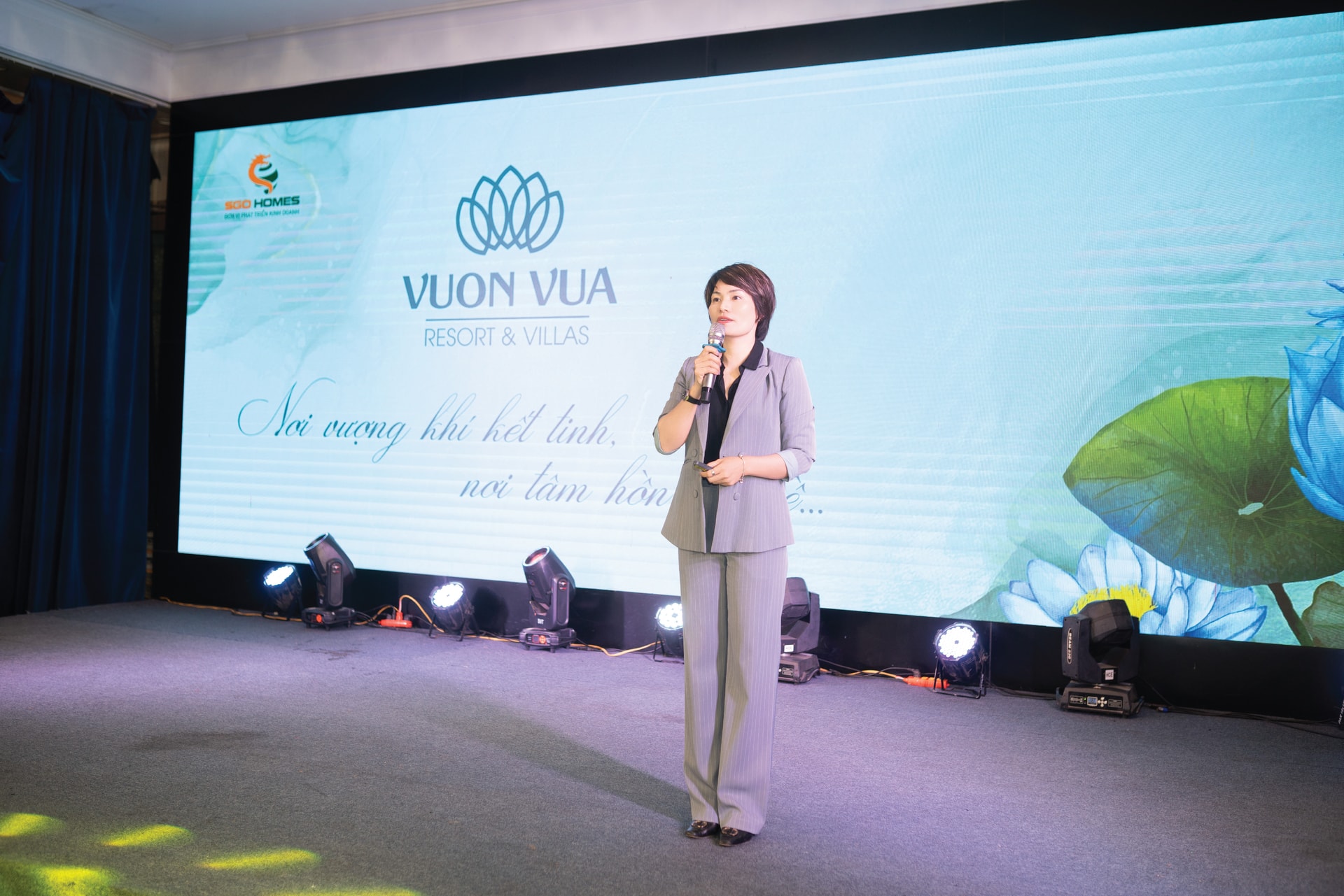 Bà Trần Thị Lệ – Trưởng ban Kinh doanh SGO Homes chia sẻ về chính sách bán hàng Bất động sản tại Vườn Vua Resort & Villas
