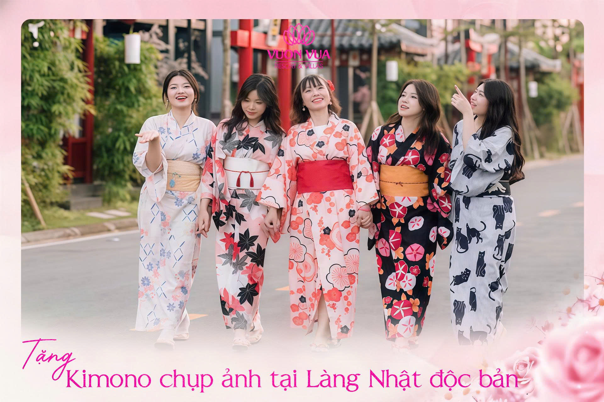 Điểm đáng chú ý là gói dịch vụ được thiết kế theo hướng “all-in-one”, tích hợp nhiều hoạt động trong cùng một mức giá. Du khách được sử dụng vé vào cửa resort sinh thái, trải nghiệm xông – sục Onsen tại Kodani Onsen Wellness Spa, tham quan không gian Làng Nhật và khoác kimono truyền thống để chụp ảnh lưu niệm.