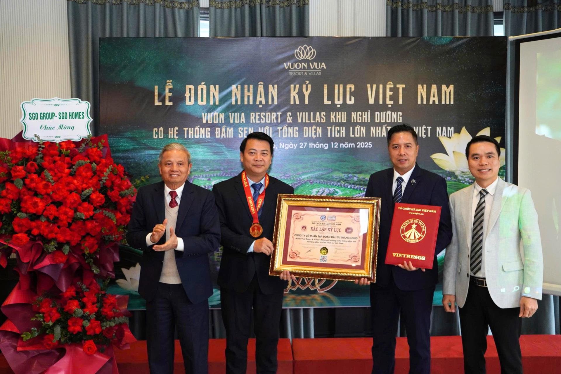 Sáng ngày 27/12/2025, trong không khí trang trọng và hân hoan, Lễ đón nhận Kỷ lục Việt Nam đã được tổ chức tại Vườn Vua Resort & Villas (xã Tu Vũ, tỉnh Phú Thọ). Tại sự kiện, Tổ chức Kỷ lục Việt Nam (VietKings) chính thức công bố xác lập Kỷ lục Việt Nam - Vườn Vua Resort & Villas sở hữu“Khu nghỉ dưỡng có hệ thống đầm sen với tổng diện tích lớn nhất tại Việt Nam”.