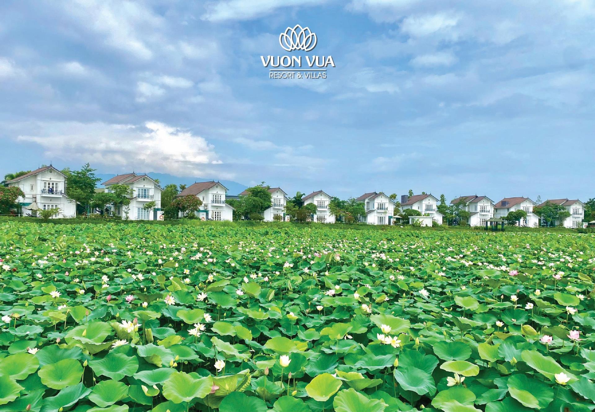 Hệ thống đầm sen không chỉ tạo nên dấu ấn cảnh quan riêng biệt, mà còn đóng vai trò quan trọng trong việc điều hòa khí hậu, duy trì hệ sinh thái tự nhiên và kiến tạo không gian nghỉ dưỡng khoáng đạt, yên bình. Hình ảnh sen nở bốn mùa, mặt nước tĩnh lặng, hòa quyện cùng địa hình tự nhiên đã trở thành biểu tượng đặc trưng, mang đậm giá trị văn hóa Á Đông tại Vườn Vua Resort & Villas.