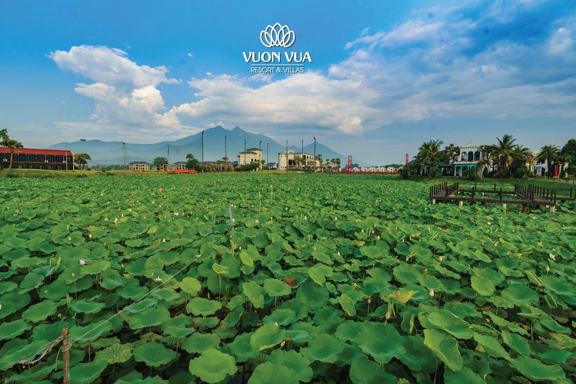Không gian đầm sen nguyên bản, biểu trưng cảnh quan sinh thái đặc trưng tại Vườn Vua Resort & Villas